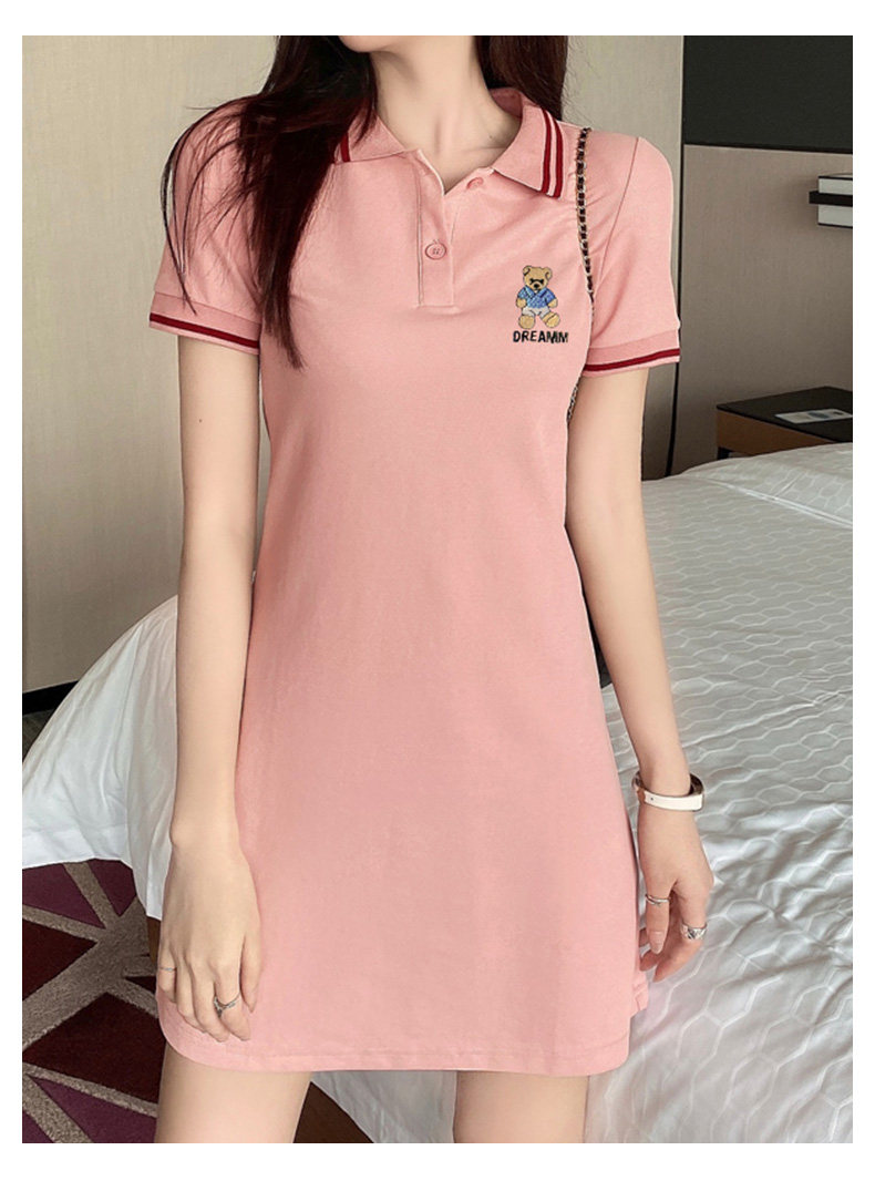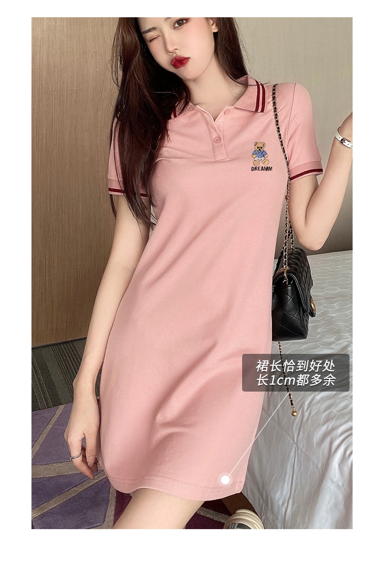 • 商品名称:粉色polo领衫连衣裙女夏季新款韩版裙子宽松设计感休闲t恤裙