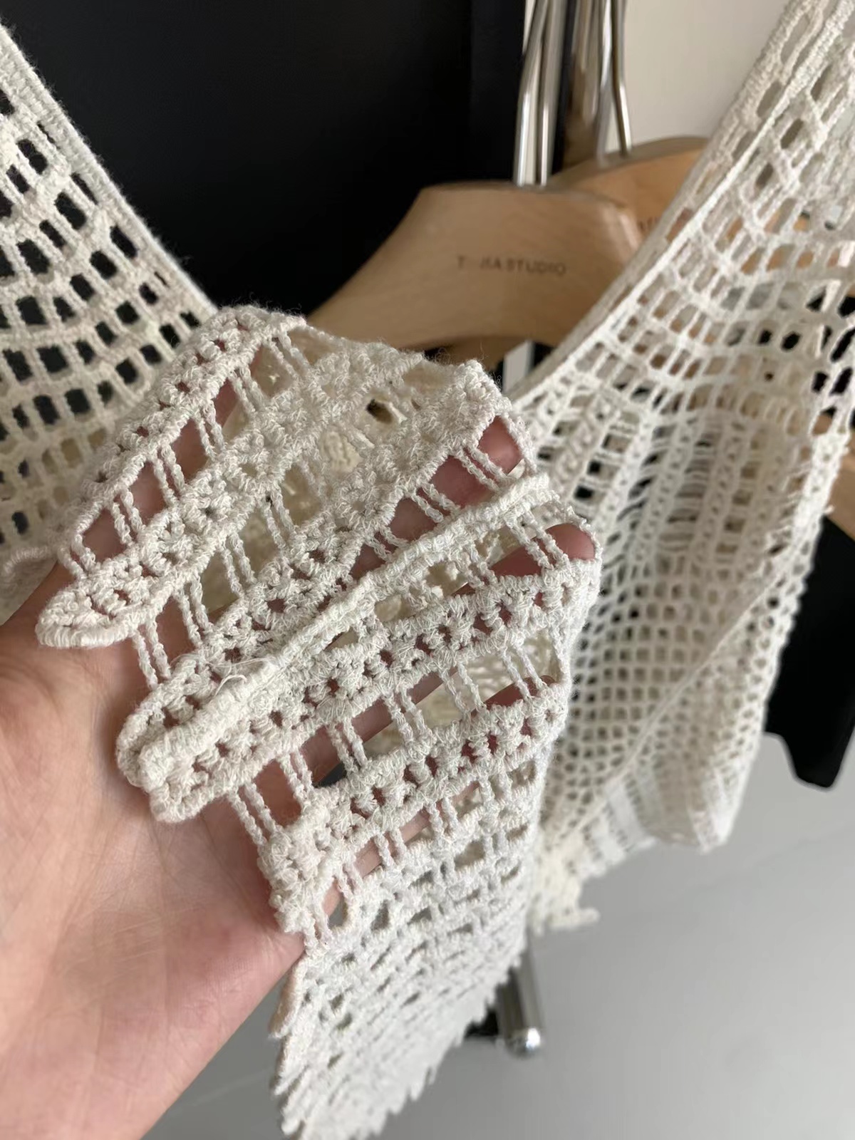 波西米亚风吊带背心外搭罩衫女针织衫夏季镂空无袖马甲上衣设计感