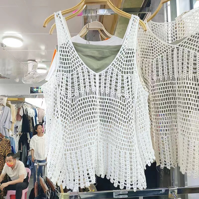 • 商品名称:波西米亚风吊带背心外搭罩衫女针织衫夏季镂空无袖马甲上衣设计感